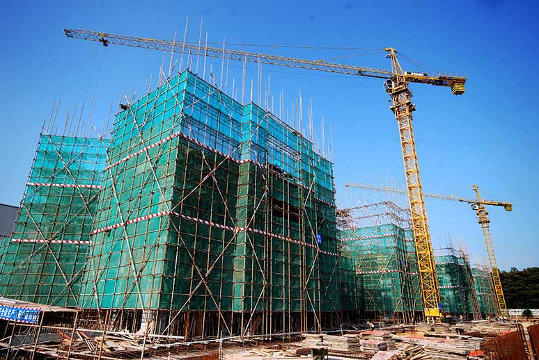 ??? 位于鳳崗鎮(zhèn)的三正瑞士公館去年11月21日奠基,位于橋頭鎮(zhèn)的三正公園里去年11月27日奠基,兩者均有高層洋房和別墅。7月底,筆者在三正公園里工地看到,高層洋房部分正在進(jìn)行地下室承臺底板建設(shè),雙拼別墅除臨近基坑的4幢尚未施工外,其余均已封頂,進(jìn)入內(nèi)部裝潢階段。烈日之下,機(jī)器的轟鳴聲與工作人員的吆喝聲相互交融,空中的龍門架與地面的車輛相互輝映,形成一派熱火朝天的場景。
